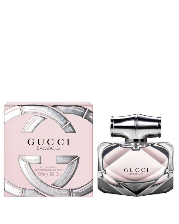 طراحی بطری این عطر بسیار چشمنواز است؛ شیشهای که به شکل یک الماس تراشخورده طراحی شده و با درپوش فلزی نقرهایرنگ، جلوهای لوکس و جذاب به خود گرفته است. نام Gucci و Bamboo با رنگ مشکی روی شیشه چاپ شده تا هویت اصیل این عطر را یادآور شود.